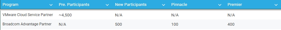 Broadcom transitioned from the VMware Cloud Service Provider (VCSP) program to the Broadcom Advantage Partner Program, impacting how Premier and Pinnacle partners enter and operate. This change aimed to streamline the partner ecosystem, focusing on fewer, more strategic partners.